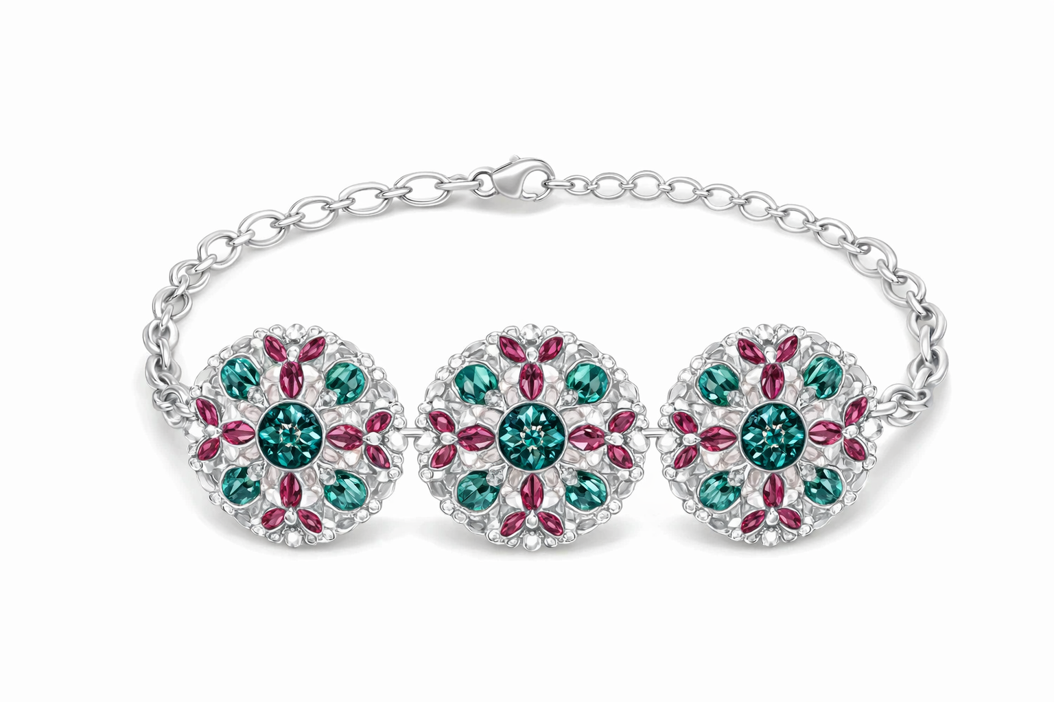 Zrcadlová metoda kombinuje světlo, barvu a drobné prvky do harmonických abstraktních motivů. Vznikají podobně jako lámající se odrazy v zrcadlech – z vrstev, detailů a vnitřní kompozice. Nesou v sobě estetiku vhodnou pro šperky i módní průmysl.